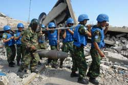 作為負責任的大國,中國積極參加聯合國維和行動,派出多批醫(yī)療、工兵和運輸分隊執(zhí)行救死扶傷、排除雷患和運輸物資的任務,受到廣泛贊譽。