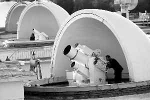 基地戰(zhàn)士用光測設(shè)備精確測量劃過高空的導(dǎo)彈痕跡。譚超 攝