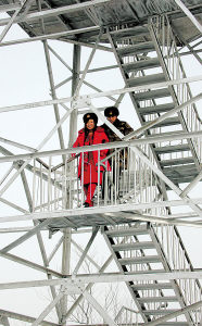 新郎新娘登上哨塔,飽覽界江風(fēng)光。