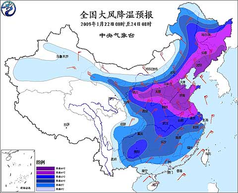 受強(qiáng)冷空氣東移南下影響,未來兩天,新疆東部、西北地區(qū)大部、華北、東北地區(qū)、黃淮、江淮、江漢、江南北部將有5~7級偏北風(fēng),江南中南部、華南以及四川盆地北部將有4~6級偏北風(fēng),上述地區(qū)的江河湖面風(fēng)力可達(dá)6~8級;冷空氣前鋒過后,西北地區(qū)北部和東部、內(nèi)蒙古東部、華北、東北地區(qū)、黃淮、江淮、江漢等地的氣溫將先后下降8~12℃,其中,西北地區(qū)東部偏北地區(qū)、華北東部和南部、東北地區(qū)中南部、黃淮、江淮中東部等地降溫可達(dá)14℃以上;江南、華南大部、西南地區(qū)東部等地的氣溫將先后下降6~10℃,局部地區(qū)降溫可達(dá)12℃以上。今天白天到夜間,遼寧東北部、吉林東部、黑龍江東部等地的部分地區(qū)有大雪、局部地區(qū)有暴雪。