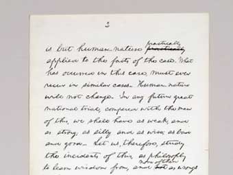 嘉士德拍賣行估計該手跡會拍出300-400萬美元,打破林肯個人文稿2002年創(chuàng)造的310萬美元記錄。嘉士德拍賣行認為,現(xiàn)在林肯熱再次升溫多是因奧巴馬的緣故,因為奧巴馬在總統(tǒng)競選中常常提到林肯。(梁小逸報道)
