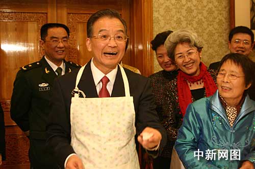 當(dāng)?shù)貢r(shí)間二月一日中午,正在英國訪問的中國總理溫家寶來到中國駐英大使館看望外交人員和華僑華人。他和大家一起包餃子,還風(fēng)趣地說自己包餃子的手藝很不錯(cuò)。中新社記者 張朔攝