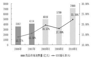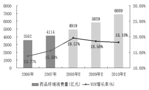 她表示,如果按藥品消費占50%計算,藥品市場將增加1666億元的費用供給。隨著醫(yī)改的逐步推進,未來政府在醫(yī)療保障方面的剛性支出將逐年加大,即使在宏觀經(jīng)濟周期性回落的情況下也能支撐居民醫(yī)療保健消費的增長,并從而帶動藥品消費的增長。