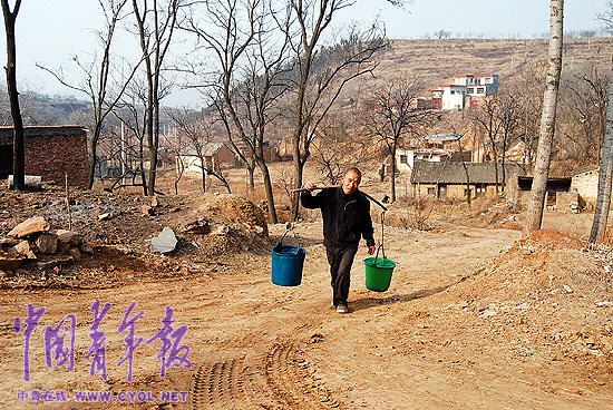 “面對這種情況,鄉(xiāng)里采取兩個步驟來解決張溝村人畜吃水難問題!本皶悦鲗χ袊嗄陥笥浾哒f,“首先是解燃眉之急。春節(jié)后,鄉(xiāng)里組織了4臺抗旱送水車,和武警部隊鄭州支隊的2臺送水車一起,開始為張溝免費送水。爭取把每家每戶的水窖都裝滿。我們還準(zhǔn)備再打兩眼深井,把提灌和自來水的管網(wǎng)配套設(shè)施都弄好,把自來水送到每個村民家里。”