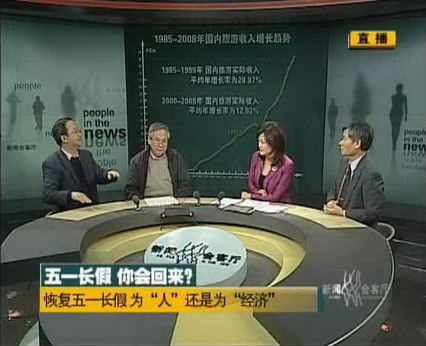 劉思敏:如果有證據(jù)證明,全中國(guó)就只有蔡教授最聰明,這個(gè)結(jié)論就成立。為什么呢?因?yàn)槲覀儾环裾J(rèn),盡管現(xiàn)在有些人說,希望否認(rèn)當(dāng)初設(shè)立黃金周是為了拉動(dòng)內(nèi)需。我覺得根據(jù)我的研究,當(dāng)初的最初目的就是為了拉動(dòng)內(nèi)需。那個(gè)時(shí)候是1999年亞洲金融危機(jī)的時(shí)候,我們的確把黃金周作為一個(gè)工具使用了,那個(gè)時(shí)候是全國(guó)的共識(shí),至少是國(guó)務(wù)院的共識(shí),否則不會(huì)這么實(shí)行,F(xiàn)在在全球性的金融海嘯的背景下,全國(guó)那么多人士提出恢復(fù)五一黃金周,那么多省份,包括黃華華省長(zhǎng)也提出,而且認(rèn)識(shí)到對(duì)拉動(dòng)經(jīng)濟(jì)的作用。