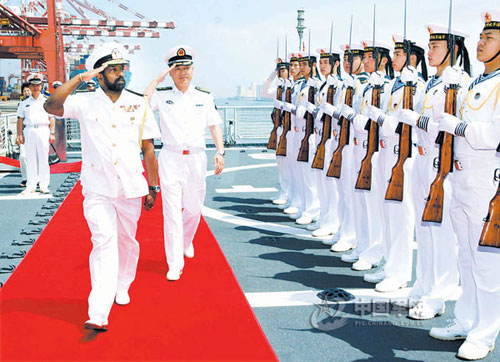 赴巴基斯坦參加“和平-09”海上多國聯(lián)合軍事演習的“廣州”號導彈驅逐艦今天停靠斯里蘭卡科倫坡港,進行第二次補給。