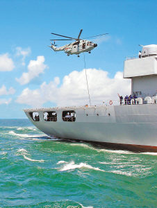 同時(shí),這種訓(xùn)法也是對(duì)各專業(yè)官兵協(xié)同能力的鍛煉。對(duì)此,艦長(zhǎng)陳德楠深有感觸:“軍艦各部門各專業(yè)隔行如隔山,盡管官兵同舟共濟(jì),但輪機(jī)長(zhǎng)和軍醫(yī)的專業(yè)卻風(fēng)馬牛不相及,也沒(méi)法在一塊訓(xùn),F(xiàn)在呢……”善于打比方的陳德楠這樣告訴記者:“模塊化組訓(xùn)就像中西樂(lè)隊(duì)大排練,拉二胡的和彈鋼琴的演奏的是同一個(gè)譜子!