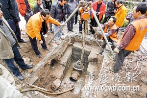 市自來水公司副總經(jīng)理姜源說,此次爆裂的是根300毫米過街水管,造成大坪白云賓館至渝州賓館沿線3萬多人停水。爆裂水管橫貫大(坪)石(橋鋪)路,該路是主城交通大動(dòng)脈,他們決定不挖路面,棄用過街水管另鋪新管。