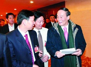 昨日下午4時許,王岐山參加完湖南代表團(tuán)的討論后,黃志明將準(zhǔn)備已久的《關(guān)于成立國有社保銀行的建議》交到王岐山的手中!斑@是我一個基層代表的建議,希望對國家有所幫助,并請多多指導(dǎo)!”黃志明激動地說!爸x謝你,我會認(rèn)真看的。”王岐山接過黃志明的建議笑著表示。