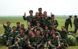 女傘兵陳思維談起入伍后學(xué)跳傘的經(jīng)歷,諸多困難及數(shù)次遇險(xiǎn)的情景至今仍記憶猶新。她說(shuō),我們剛到女子空降隊(duì)時(shí),對(duì)藍(lán)天充滿了向往,渴望同男兵一樣駕馭傘花遨游藍(lán)天?刹辉耄ㄍ{(lán)天的路竟然那樣的艱辛和漫長(zhǎng)。按要求,隊(duì)員們每年的跳傘訓(xùn)練任務(wù)是每人80至100次,而每個(gè)跳傘日至少要跳3次傘,這對(duì)體能消耗相當(dāng)大。每天,我們要跑兩個(gè)5公里,做100個(gè)俯臥撐、100個(gè)仰臥起坐、100次高抬腿,訓(xùn)練強(qiáng)度可想而知。跳傘訓(xùn)練首先從地面訓(xùn)練開(kāi)始,主要是練習(xí)空中跳傘的離和著陸動(dòng)作。訓(xùn)練場(chǎng)上,教員一聲令,大家就迅速地將兩腿分開(kāi),間隔20厘米,身體斜60度,全身緊縮一團(tuán),雙手抱在胸前。一般人3分鐘左右便大汗淋漓,10分鐘左右,身體虛弱的甚至昏倒。而教員們?yōu)榱俗岅?duì)員練就良好的離機(jī)姿勢(shì),一聲口令,女傘兵們彎腰、收腹、屈膝,一做就是十幾分鐘,讓身體幾乎凝成一尊雕塑。當(dāng)教員喊“跳”的口令時(shí),大家便從1.5米高的平臺(tái)上跳下來(lái)。女隊(duì)員們每天爬上跳下不下百次。在不斷的“跳、跳、跳”中,很多同志的腿都腫了,吃飯時(shí),扶著桌子才能坐下去,吃完飯,靠人拉一把才能站起來(lái),走路時(shí)腿不聽(tīng)指揮,下坡得側(cè)著身子小心翼翼。就是這樣,通過(guò)日復(fù)一日的刻苦訓(xùn)練,每個(gè)女隊(duì)員的膽氣越來(lái)越壯,動(dòng)作越來(lái)越協(xié)調(diào)。