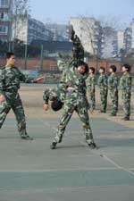 在女子特警隊營區(qū),一隊新入伍的女戰(zhàn)士正在訓(xùn)練。據(jù)陪同我們的隊長王安斌介紹,特警隊擔(dān)負(fù)著四川總隊每年的女兵新訓(xùn)任務(wù),女特警隊員就是從這里層層選拔出來的。每年新兵訓(xùn)練結(jié)束時,特警隊通過組織對全體新戰(zhàn)士進(jìn)行政治思想摸底,文化水平、心理素質(zhì)測試及軍事體育、擒敵技術(shù)、戰(zhàn)術(shù)等科目綜合考核,按照層層選拔、優(yōu)中選優(yōu)的原則,遴選出軍事過硬、素質(zhì)全面的新同志補充到女子特警隊。作為一名女子特警隊員,她們?nèi)腙牶筮必須在心理上、生理上承受常人難以想象的磨礪,經(jīng)過特種戰(zhàn)術(shù)、攀登、射擊、擒敵等20多個科目的訓(xùn)練,過好體能關(guān)、心理素質(zhì)關(guān)、特戰(zhàn)技能關(guān),才能真正實現(xiàn)脫胎換骨的轉(zhuǎn)變,成為一位名符其實的特戰(zhàn)隊員,而這一切都是依靠特殊的訓(xùn)練來實現(xiàn)的。