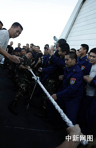 中新網(wǎng)“海口”艦3月19日電 (記者 孫自法) 3月中旬,為豐富廣大護(hù)航官兵業(yè)余生活,中國(guó)海軍艦艇編隊(duì)“?凇碧(hào)導(dǎo)彈驅(qū)逐艦在護(hù)航之余組織舉辦第二屆甲板運(yùn)動(dòng)會(huì),艦上官兵積極參與,各類比賽、訓(xùn)練項(xiàng)目精彩紛呈。編隊(duì)三亞起航遠(yuǎn)赴亞丁灣、索馬里海域執(zhí)行護(hù)航任務(wù)近三個(gè)月來,廣大護(hù)航官兵身心狀態(tài)良好、士氣昂揚(yáng)。