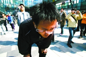 昨日13時許,眾多網(wǎng)友匯聚到三里屯Village廣場。14時,隨著一聲“今天地球一小時”,正在廣場上聊天、看車、留影的上百人,突然定格。有的拿著相機正在拍攝,有的拿著地圖看,更多的人站在原地不動。有對情侶定格住后覺得動作不夠吸引人,“違規(guī)”調(diào)整了姿勢,換成了接吻。