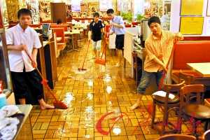 短時(shí)間的強(qiáng)降雨導(dǎo)致沙河金馬服裝城一樓檔主遭殃,數(shù)十家檔口被淹。檔主李小姐說:“衣服全部濕了,損失幾萬元呢。”讓李小姐不滿的是,平常一樓鋪?zhàn)饩秃苜F,每個(gè)月至少5000元,但水浸后,管理人員卻沒有馬上處理。