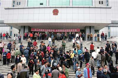 昨天早晨不到8點(diǎn),在習(xí)水縣法院大樓前,除了新華社、中央電視臺、中國青年報(bào)等眾多媒體記者外,還聚集了大量群眾!傲(xí)水出了這樣大的丑聞,很丟臉!币幻(dāng)?shù)厝罕娬f,他想看看,究竟是一些什么樣的人這樣喪盡天良。