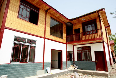 起初,科技廳征集了幾十套方案,最后傾向低成本的木結(jié)構(gòu)住房。這樣一則保留了原來(lái)的風(fēng)貌,二則原來(lái)震塌房屋的廢料可以再用,三則這里本來(lái)就產(chǎn)木材,就地取料,省時(shí)省力省錢。