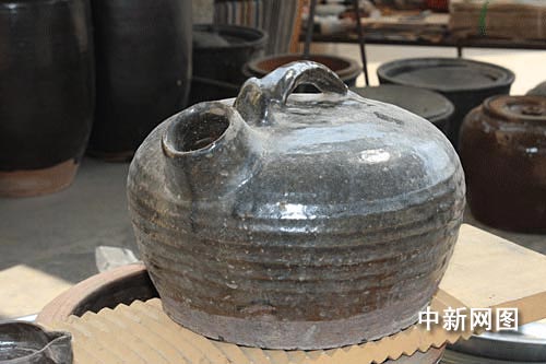 “從釉土的攪拌、溶解、沉淀、啟池到進(jìn)作坊,整個過程要持續(xù)三個多月!惫そ辰榻B說,此間陶器制作沒有模具,所有的流程和產(chǎn)品的形狀,全憑藝人的感覺和靈性。在現(xiàn)場,記者發(fā)現(xiàn),一個直徑大概不足一米的土輪子,一根稍長的木棍,外加沉淀好的釉土,就是藝人的全部用具。