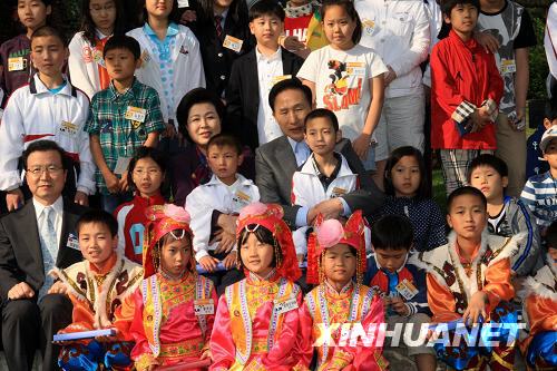 不一會(huì)兒,李明博總統(tǒng)攜夫人金潤(rùn)玉一起走來(lái),孩子們迎上前去。李明博一眼就認(rèn)出了他在大地震發(fā)生后不久訪(fǎng)問(wèn)四川時(shí)曾抱過(guò)的魏月濠小朋友。李明博撫摸著魏月濠的頭,親切地說(shuō):“長(zhǎng)大了不少!
