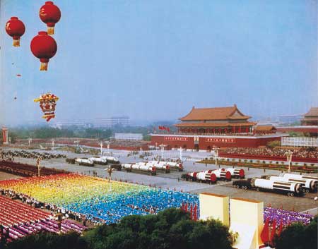 9點多鐘,閱兵式開始,當第二炮兵方陣由一排排牽引車載著一枚枚乳白色的導彈出現(xiàn)在天安門廣場時,人們在片刻驚訝之后,突然爆發(fā)出雷鳴般的歡呼聲,人群中有人大喊“二炮,萬歲……”坐著的人站起來了,站著的人跳起來了,天安門廣場沸騰了!