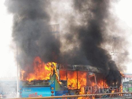 中新網(wǎng)6月5日電 今天上午8時(shí)許,成都市9路公交車在川陜立交橋處發(fā)生自燃,據(jù)四川省安監(jiān)局介紹,該事故初步核實(shí)有24人遇難,受傷人數(shù)不詳。據(jù)中央電視臺(tái)報(bào)道,目前,事故救援工作已接近尾聲,公安、刑偵人員正在對(duì)事故現(xiàn)場(chǎng)進(jìn)行處理,消防隊(duì)員已經(jīng)開(kāi)始沖洗事故現(xiàn)場(chǎng)。