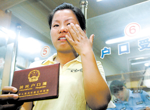 緊緊握著剛剛從戶籍民警手中遞來的《上海市居民戶口簿》,閘環(huán)靈石環(huán)境衛(wèi)生工程公司管理員、徐州來滬農民工李影抑制不住喜悅的淚水,“從來沒有想過有機會落戶上海,夢想成真的滋味,真好!”自《持有〈上海市居住證〉人員申辦本市常住戶口試行辦法》及實施細則公布后,李影等去年被評為全國優(yōu)秀農民工的一批務工人員因符合“居轉戶”的激勵條件,成為首批落戶上海的幸運者。