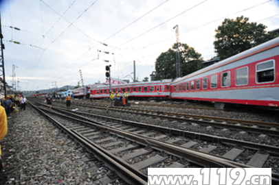 中新網(wǎng)6月29日電 京廣線湖南郴州火車站29日凌晨發(fā)生客車側(cè)面沖突事故,目前已造成3人死亡,63人受傷,其中6人重傷。公安部消防局網(wǎng)站引述湖南消防總隊的消息稱,截止當日7時整,湖南消防總隊參戰(zhàn)官兵共搶救被困人員15人,疏散旅客200余人。