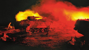 “新大綱規(guī)定,夜訓(xùn)按照年度訓(xùn)練總時(shí)間20%的比例安排。今年,我們著力提高夜間單兵專業(yè)技能的生成和轉(zhuǎn)化!笔F(tuán)長話音剛落,伴著隆隆的炮擊聲,夜暗深處火光頻閃。原來,該師新型教練員、二營教導(dǎo)員杜文斌正在組織官兵進(jìn)行坦克夜間教練射擊課目訓(xùn)練。眼前景象大出記者意料:目標(biāo)顯示不再是一盞孤燈,而是以打信號(hào)彈、模擬射擊火光和車輛閃爍明滅的燈光等多種方式,大大增加了射擊難度。“敵人射擊炮口一閃,你能不能馬上回敬一炮?我們練的就是這個(gè)!”杜文斌自豪地說。