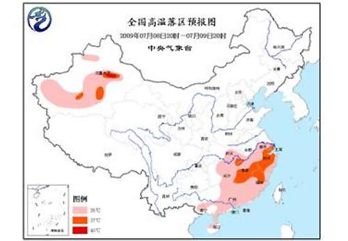 中新網(wǎng)7月8日電 中央氣象臺(tái)8日18時(shí)繼續(xù)發(fā)布高溫預(yù)報(bào):預(yù)計(jì),明天(9日)白天,新疆北疆南部和南疆盆地、湖北東部、江南大部、華南中東部等地有35℃ 以上的高溫。