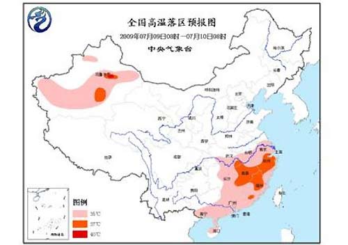 中新網(wǎng)7月9日電 中央氣象臺(tái)今日06時(shí)繼續(xù)發(fā)布高溫預(yù)報(bào):預(yù)計(jì),今天白天,新疆北疆南部和南疆盆地、湖北東部和南部、江淮南部、江南大部、華南中東部等地有35 ℃以上的高溫。