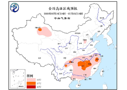 中新網(wǎng)7月14日電 據(jù)中國氣象局網(wǎng)站消息,中央氣象臺14日繼續(xù)發(fā)布高溫橙色警報:預(yù)計,今天下午到明天中午,江淮南部和西部、江漢大部、江南大部、華南中北部、四川盆地東部、重慶、貴州東部、南疆東部等地將有35℃以上的高溫,其中,湖南中東部、江西西北部、浙江西北部、重慶西南部以及吐魯番盆地等地的部分地區(qū)最高氣溫可達(dá)37~38℃。
