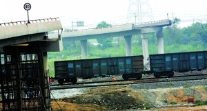 本報訊 匝道坍塌后,橋下的李港鐵路雙向中斷。經搶修,昨日鐵路雙向通車。