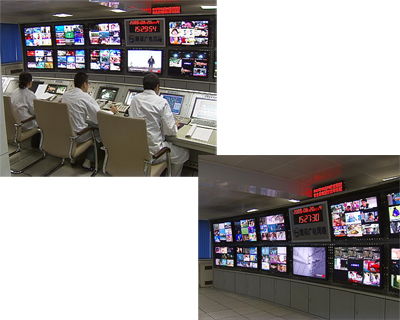這是陜西廣電網(wǎng)絡(luò)公司的運行調(diào)度部的前端機房,它是把省市縣三級網(wǎng)絡(luò)貫通,進行整合,陜西省內(nèi)的電視用戶收看的數(shù)字電視節(jié)目,就是通過這個機房傳輸過去的。