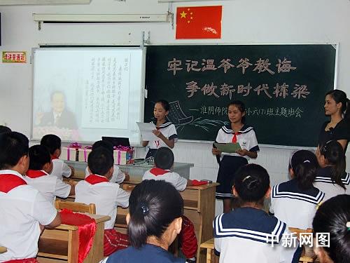 主題班會(huì)上,淮陰師范學(xué)院第一附屬小學(xué)的學(xué)生們還向淮安全市的少先隊(duì)員發(fā)出了“牢記溫爺爺?shù)慕虒?dǎo),像周總理一樣從小樹立‘為中華之崛起而讀書’遠(yuǎn)大志向”的倡議;窗彩形瘯泟⒂乐、淮安市委常委、宣傳部長劉希平等領(lǐng)導(dǎo)參加了主題班會(huì),并向孩子們贈(zèng)送圖書,鼓勵(lì)孩子們牢記溫總理的教導(dǎo),好好學(xué)習(xí),將來為家鄉(xiāng)的建設(shè)做貢獻(xiàn)。