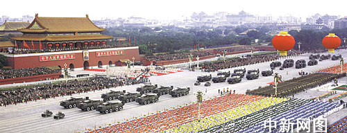 新中國五十周年國慶閱兵二十五個戰(zhàn)車方隊中最后四個方隊展示的是中國自力更生研制的戰(zhàn)略、戰(zhàn)術(shù)地地導(dǎo)彈系列,顯示中國常規(guī)與核戰(zhàn)略導(dǎo)彈反擊力量的整體作戰(zhàn)能力,受閱戰(zhàn)略導(dǎo)彈體積小了、威力更大了、機動性更強了,已從過去的固定發(fā)射形式發(fā)展到野外機動發(fā)射,具有全方位、全天候作戰(zhàn)能力和較強的防偵察、抗干擾能力。