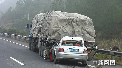 中新網(wǎng)麗水11月23日電(記者 江耘 通訊員 李正坤)今天早上8點(diǎn)44分,在龍麗高速往浙江龍游方向的66公里處發(fā)生一起車(chē)輛追尾重大交通事故,一輛轎車(chē)與一輛大型貨運(yùn)車(chē)發(fā)生追尾,造成轎車(chē)上包括駕駛員在內(nèi)的4名乘客當(dāng)場(chǎng)死亡。