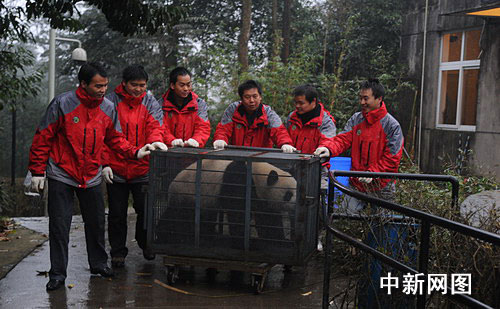 中新網(wǎng)成都11月27日電 (記者楊杰) 27日早上8時30分,在臥龍中國保護(hù)大熊貓研究中心白熊坪,工作人員一片忙碌,開始將赴澳大利亞的大熊貓“網(wǎng)網(wǎng)”、“福妮”裝籠,并送上卡車整裝待發(fā)。10時整,歡送“網(wǎng)網(wǎng)”、“福妮”儀式舉行,中澳雙方動物專家和相關(guān)官員出席。隨后,在家鄉(xiāng)人民祝福和不舍的目光中,車隊(duì)緩緩駛離雅安,前往成都雙流國際機(jī)場。