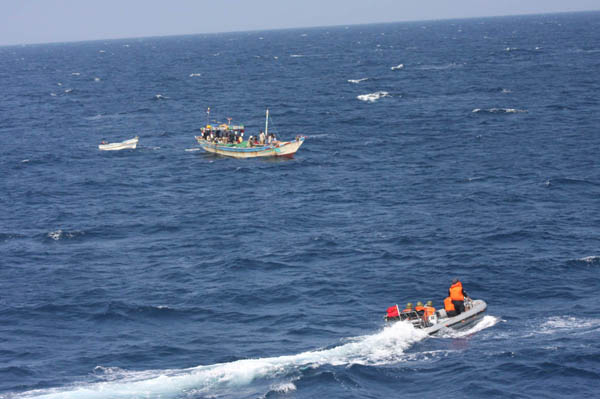 中新網(wǎng)12月21日電 據(jù)國防部網(wǎng)站消息,中國海軍第三批護航編隊在亞丁灣、索馬里海域執(zhí)行護航任務時,針對海盜活動的情況規(guī)律創(chuàng)新出許多反海盜新戰(zhàn)術,充分提高了護航效率。