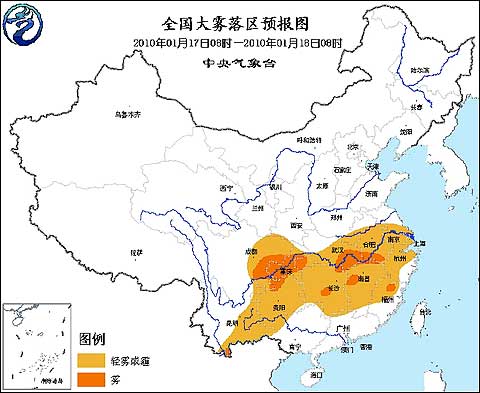 中央氣象臺2010年1月17日06時發(fā)布大霧藍色預(yù)警: