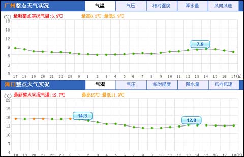 雖然時下已是“七九”,但在雨水的作用下,江淮、江南以及華南等地的氣溫卻并不高,一些地方的溫度較之前一天甚至還有降低。以廣州為例,16日14時廣州氣溫只有7.9℃,較前一天的9℃又下降了1.1℃。經(jīng)數(shù)據(jù)比對,該溫度也是廣州自去年立冬以來最冷的一天。之前廣州最冷的一天是1月7日,最高氣溫8.8℃。再拿?趤碚f,16日02點的氣溫為14.3℃,爾后逐漸下滑,到了當日14時氣溫下降至12.8℃。濕度大,溫度低,以上地區(qū)的人體感覺該是相當陰冷。