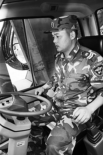 說得容易做來難。王益春學習挖掘機駕駛不久,在一次沼澤地作業(yè)中,駕駛的74式Ⅱ型輪式挖掘機兩個前輪下陷泥潭,急得滿頭大汗!皰鞊、加油、撐臂……”班長鄧舜之將“鐵爪”往前一撐,前推后拉不足2分鐘,挖掘機重顯威風!捌綍r勤學苦練,戰(zhàn)時才能適應復雜環(huán)境!蓖跻娲喊迪聸Q心,要像班長一樣嫻熟操作“鐵爪”。平時作業(yè)時,爛泥潭、沼澤地等臟活難活,王益春總是積極主動搶著干,休息間隙就虛心請教苦練。晚上,別人看電視,他卻對照教材,悉心研究挖掘機構造原理,把能拆開的零部件拆開看個究竟。他告訴記者,要使平底坑壁直底平,關鍵就是上下左右兩手的配合操作,“鐵爪”長度、開口大小、鐵臂長短,牢記這些數(shù)據(jù)不但可當尺子用,還能提高精準度。為此,他一有空就把小石頭吊在樹枝上,從不同角度用“鐵爪”去觸摸小石頭,還在操縱桿底座上刻上刻度,根據(jù)土質的松軟程度,感悟拉操縱桿的力度。