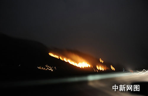 26日晚,中新網(wǎng)記者夜行貴州六盤水到安順市關(guān)嶺布依族苗族自治縣的路上,在不到三小時的時間里,連續(xù)看到5起正在燃燒的山火。其中,在青黃高速穿越的六枝特區(qū)安樂塘附近層層疊疊的大山中間,一條火龍在幾座山的半腰際蔓延肆虐,遠(yuǎn)遠(yuǎn)望去,猛烈的火勢映紅天際。而其他幾處山火亦是從山腰向上蔓延,有愈發(fā)猛烈之勢?吹缴交鸷,記者隨即撥打火警119,并從接線員處了解到,或因氣溫升高的原因,當(dāng)晚接到的森林火警數(shù)量較之前幾日陡增,消防部門正會同林業(yè)及相關(guān)單位協(xié)調(diào)調(diào)集人力滅火,但形勢仍不容樂觀。