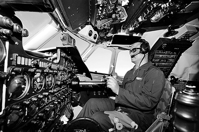 今天13時(shí)37分,記者登上一架加裝了人工增雨播撒器工作平臺(tái)的空軍運(yùn)-7運(yùn)輸機(jī)。隨后,飛機(jī)滑出跑道,躍入陰沉的天空。至此,成空派往抗旱救災(zāi)一線執(zhí)行人工增雨作業(yè)的飛機(jī)已達(dá)14架。