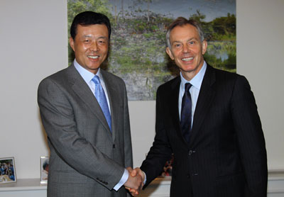 布萊爾熱烈歡迎劉大使來英履新。他說,他剛剛訪華歸來,中國之行令人印象深刻。他一直非常關(guān)注中國的發(fā)展,近年來幾乎每年都訪問中國,每次能切實(shí)感受到中國無時(shí)不在發(fā)生的新變化,看到一個(gè)發(fā)展勢頭強(qiáng)勁、始終充滿活力的中國。他認(rèn)為,世界新一代領(lǐng)導(dǎo)人加強(qiáng)對(duì)中國的認(rèn)識(shí)和了解至關(guān)重要。當(dāng)今世界日新月異,中西方應(yīng)該審慎對(duì)待雙方認(rèn)知差距的演進(jìn),努力保持和發(fā)展互利共贏的伙伴關(guān)系。他相信,無論英國大選結(jié)果如何,英國政府積極發(fā)展對(duì)華關(guān)系的政策不會(huì)改變,任何政黨都會(huì)為加強(qiáng)英中兩國間的交流與合作而努力。