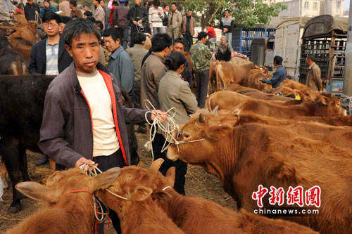 秦大章夫婦看上了馮元達(dá)一頭不到兩歲的小牛,“沒(méi)換牙齒、蹄也不錯(cuò)!鼻卮笳潞軆(nèi)行的告訴記者。在此后近30分鐘的時(shí)間里,一場(chǎng)在2300元至1900元人民幣之間的價(jià)錢(qián)拉鋸戰(zhàn)進(jìn)行起來(lái)。最終,在周邊人的撮合下,秦大章以2010元的價(jià)錢(qián)買(mǎi)到了他看上的小牛。