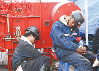 在王家?guī)X煤礦透水事故的救援現(xiàn)場,睡眠不足困擾著所有的搶險(xiǎn)救援人員。無論白天還是夜晚,他們總能利用最近的位置,以最快的速度完成一次短暫的休整,接著又投入工作。