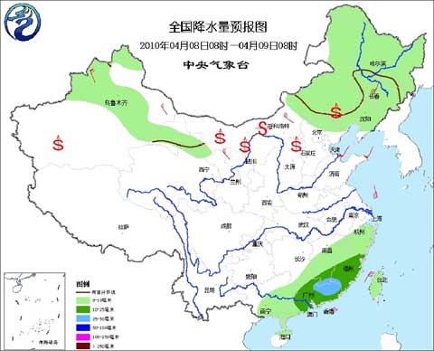 5日入侵我國(guó)的冷空氣南下之后,與南方暖濕氣流配合,并給南方大部送去了大量降雨。從3月28日至4月7日十天的全國(guó)降水量實(shí)況圖來看,江南、華南大部降水非常多,特別是湖南、江西、福建等省部分地區(qū),累計(jì)雨量在100-200毫米之間。