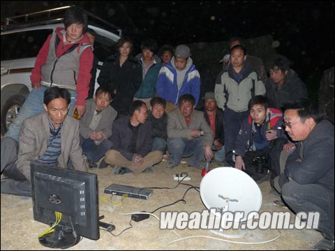 從青海省氣象局開出的應(yīng)急車已經(jīng)到達(dá)這里,在分派食物和水之后,省氣象局開始在現(xiàn)場(chǎng)指揮安裝設(shè)備,希望盡快恢復(fù)工作。