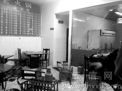 “砸!”一聲“令”下,幾十人拿著砍刀和鋼管,在火鍋店就開始到處亂砍!班枥锱纠病被疱伒甑牟AТ胺鬯樾缘袈洌【破、餐具接二連三被砸碎,正在沸騰的火鍋被掀翻在地,墻上、地上灑滿紅油。頓時店里一片混亂,客人、服務(wù)員紛紛沖進(jìn)廚房躲避。