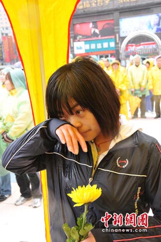中新網(wǎng)鄭州4月21日電 (記者 晏立海)4月21日上午,鄭州市民手捧黃菊花匯集二七廣場,在雨中默哀3分鐘,以悼念在青海玉樹地震中遇難的同胞。