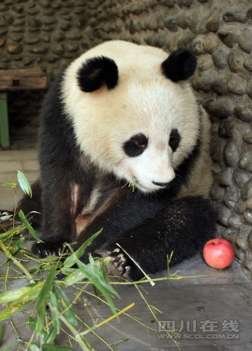 地震后的北川首次發(fā)現(xiàn)大熊貓,而且這只大熊貓身體狀況危急!昨日,這只大熊貓?jiān)诔啥夹茇埢馗綦x檢疫區(qū)接受專家的全方位檢查;孬F醫(yī)院院長楊智稱,通過兩天的緊急救治,大熊貓生命體征基本穩(wěn)定,但目前仍沒有脫離生命危險(xiǎn)。專家估計(jì),這只大熊貓是被媽媽攆出家門的。